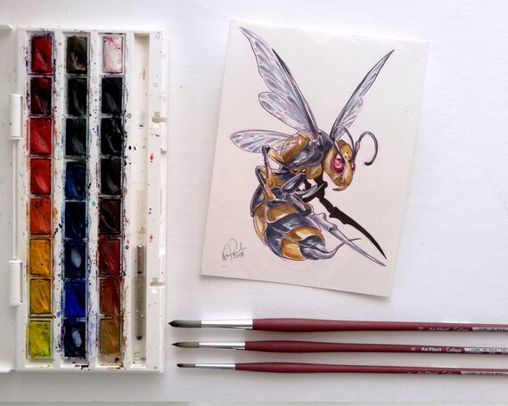 Mega Beedrill Origina Watercolour Painting Etsy